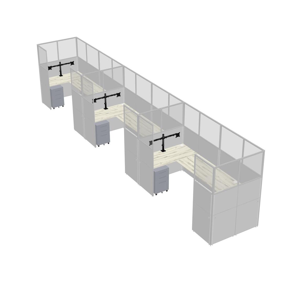Heinne Holz U-shaped Panel System For 3 Person + Monitor Arm (double Arms) + Metal Mobile Drawers For 3 User(s)