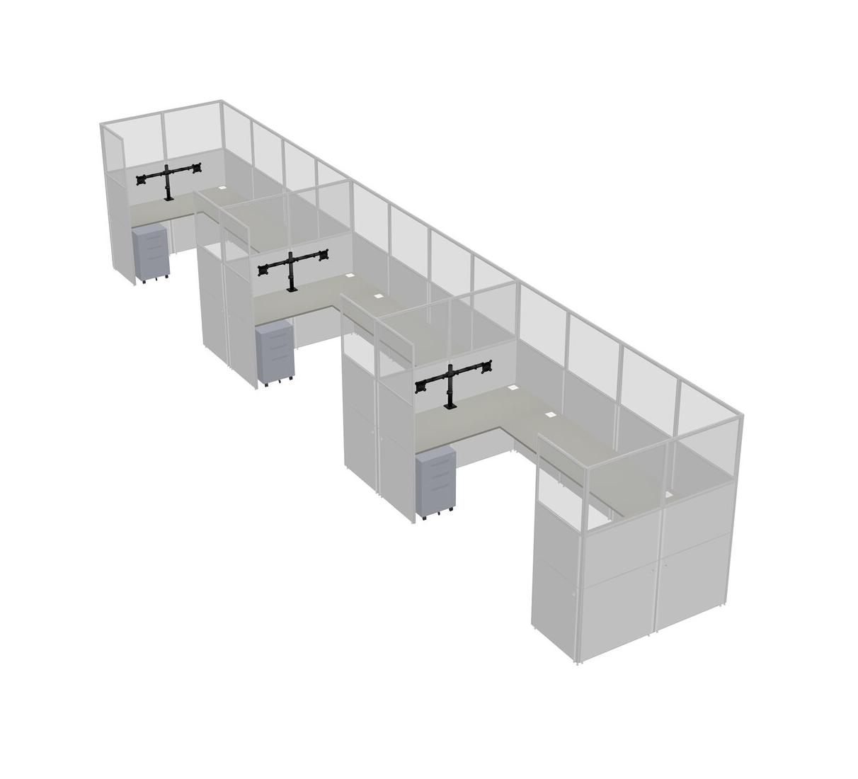 Grey Shadows U-shaped Panel System For 3 Person + Monitor Arm (double Arms) + Metal Mobile Drawers For 3 User(s)