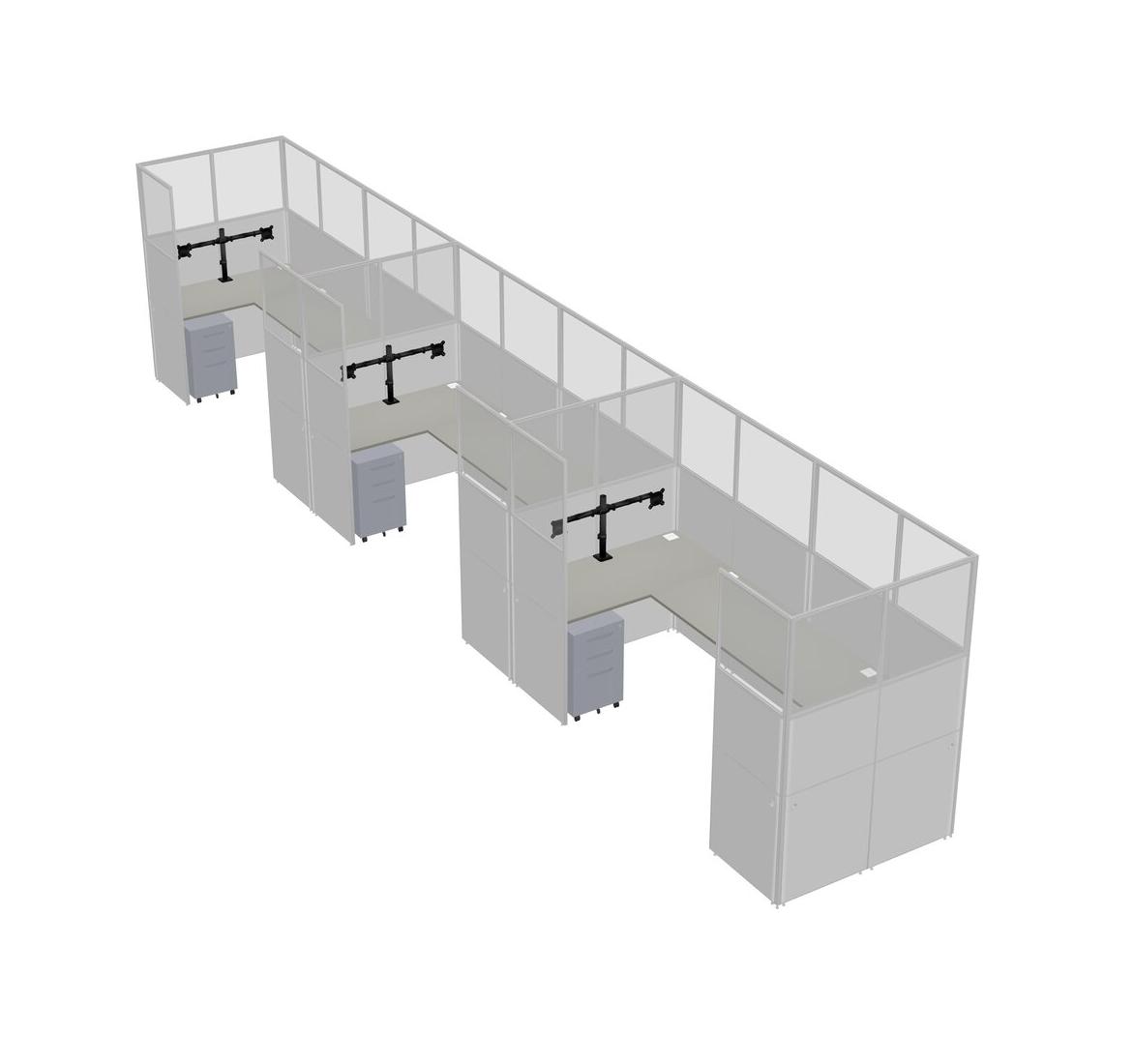 Grey Shadows U-shaped Panel System For 3 Person + Monitor Arm (double Arms) + Metal Mobile Drawers For 3 User(s)
