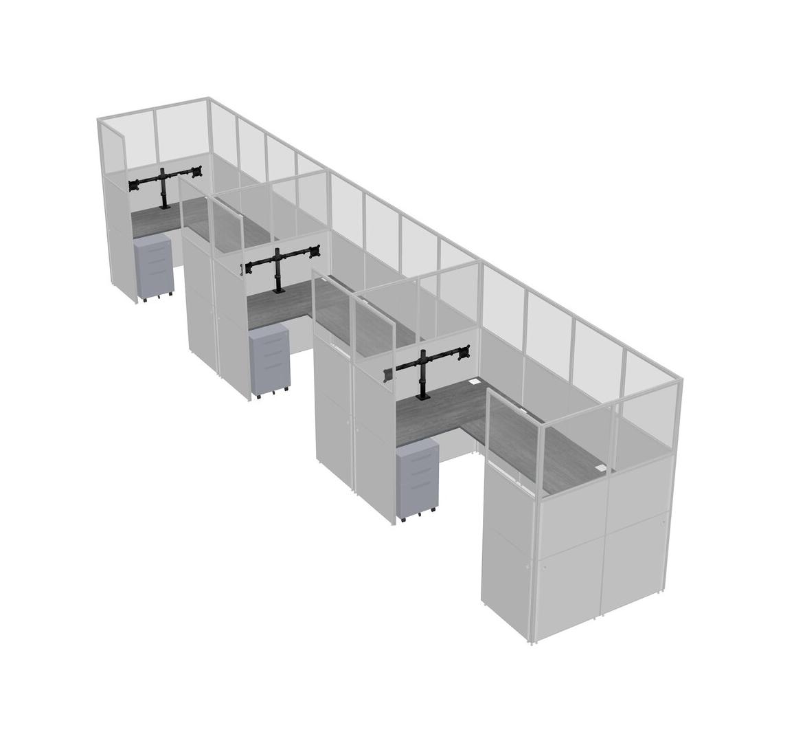 Grey U-shaped Panel System For 3 Person + Monitor Arm (double Arms) + Metal Mobile Drawers For 3 User(s)