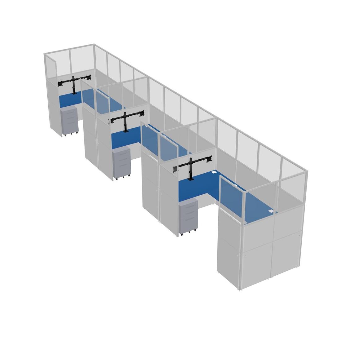 Prism Blue U-shaped Panel System For 3 Person + Monitor Arm (double Arms) + Metal Mobile Drawers For 3 User(s)
