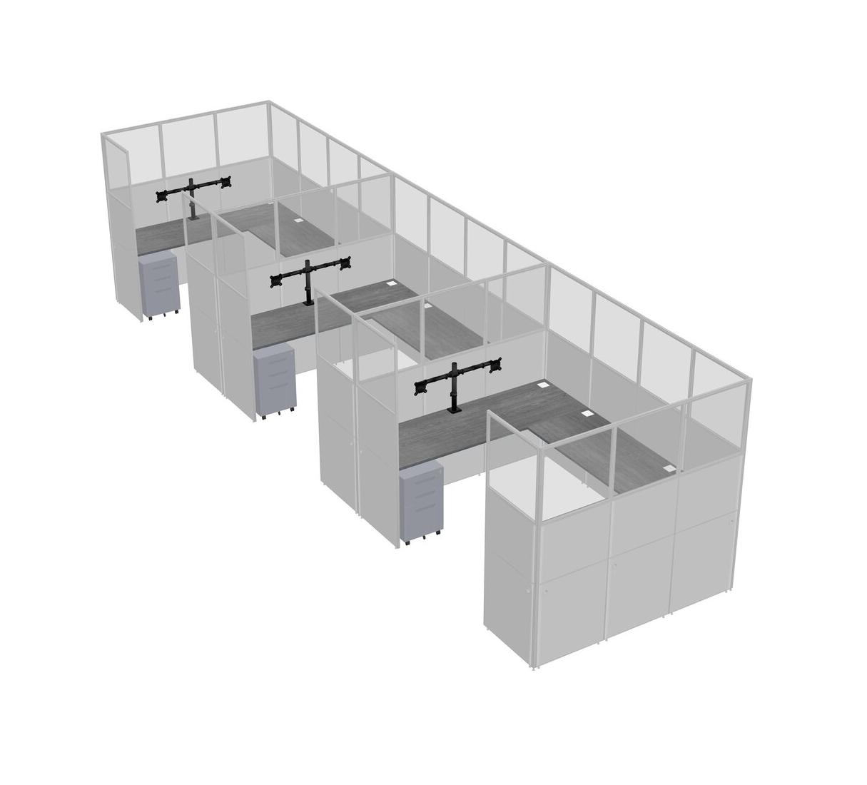Grey U-shaped Panel System For 3 Person + Monitor Arm (double Arms) + Metal Mobile Drawers For 3 User(s)
