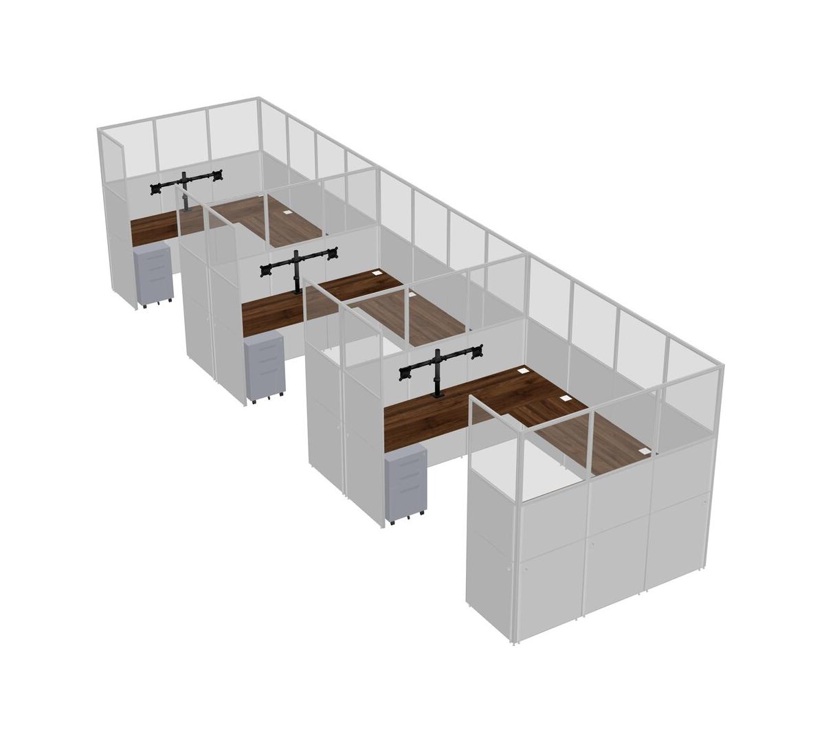 Columbia Walnut U-shaped Panel System For 3 Person + Monitor Arm (double Arms) + Metal Mobile Drawers For 3 User(s)