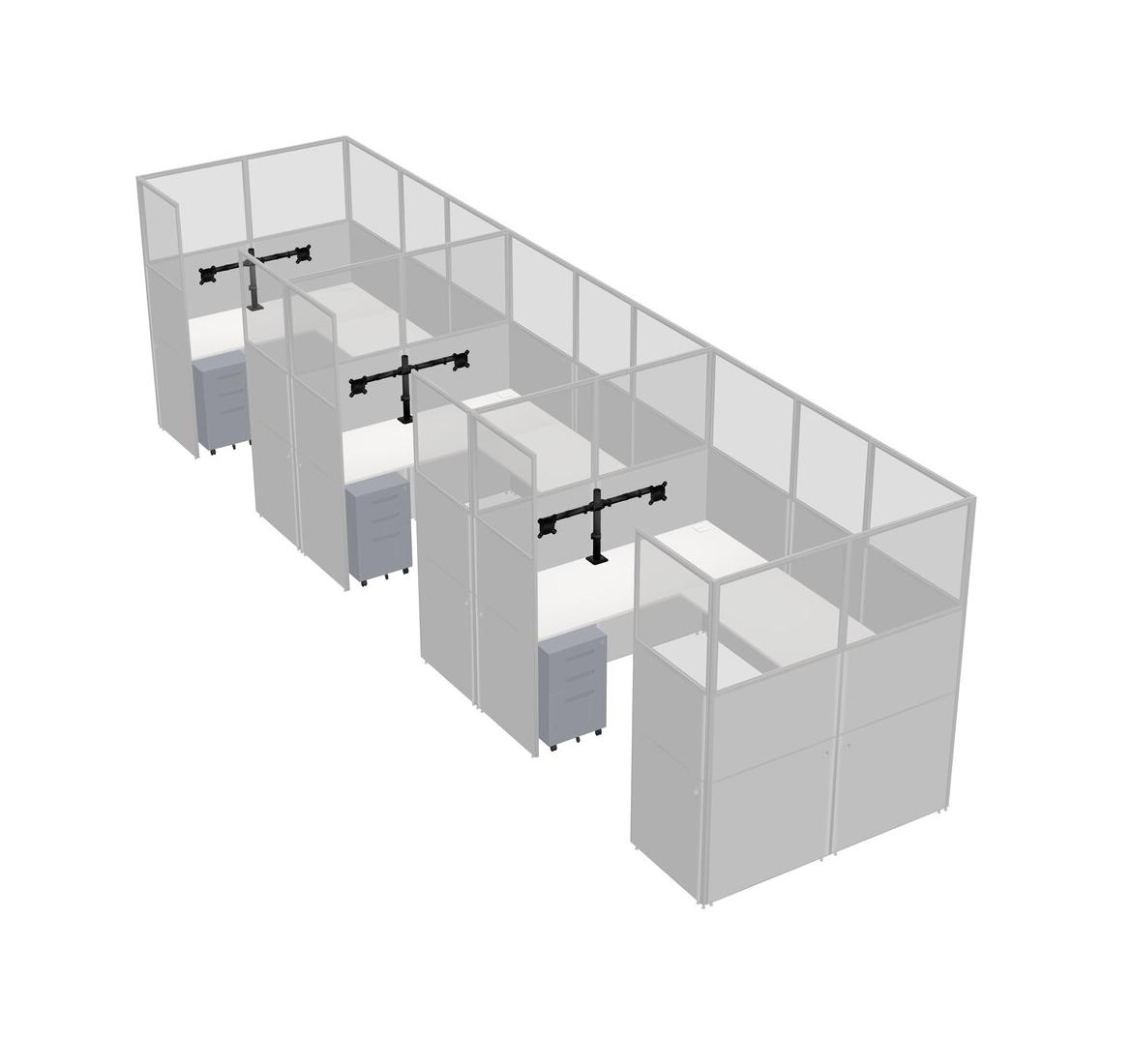 White U-shaped Panel System For 3 Person + Monitor Arm (double Arms) + Metal Mobile Drawers For 3 User(s)