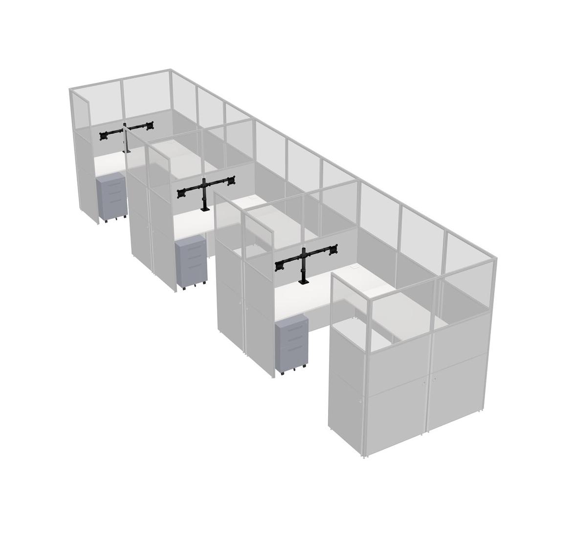 White U-shaped Panel System For 3 Person + Monitor Arm (double Arms) + Metal Mobile Drawers For 3 User(s)
