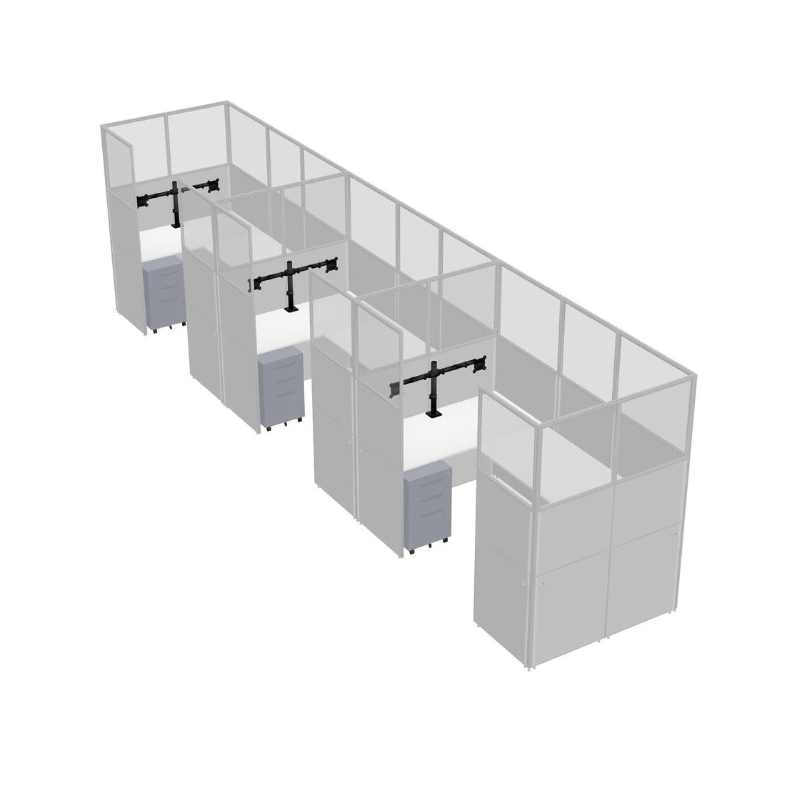 White U-shaped Panel System For 3 Person + Monitor Arm (double Arms) + Metal Mobile Drawers For 3 User(s)