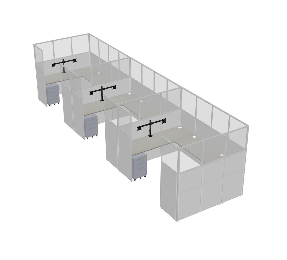 Grey Shadows U-shaped Panel System For 3 Person + Monitor Arm (double Arms) + Metal Mobile Drawers For 3 User(s)