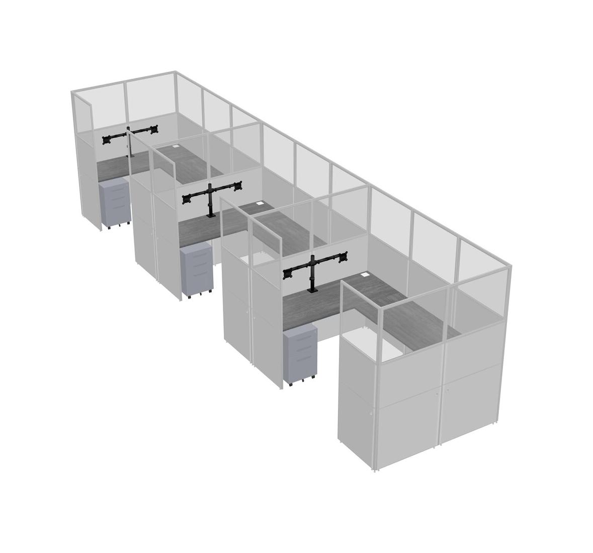 Grey U-shaped Panel System For 3 Person + Monitor Arm (double Arms) + Metal Mobile Drawers For 3 User(s)