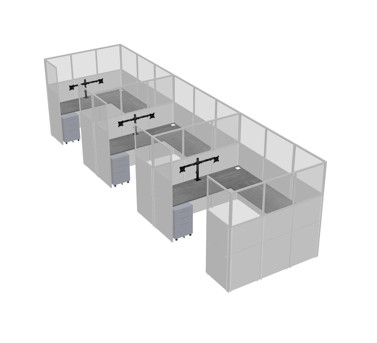Grey U-shaped Panel System For 3 Person + Monitor Arm (double Arms) + Metal Mobile Drawers For 3 User(s)