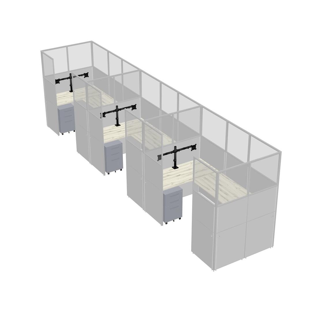 Heinne Holz U-shaped Panel System For 3 Person + Monitor Arm (double Arms) + Metal Mobile Drawers For 3 User(s)