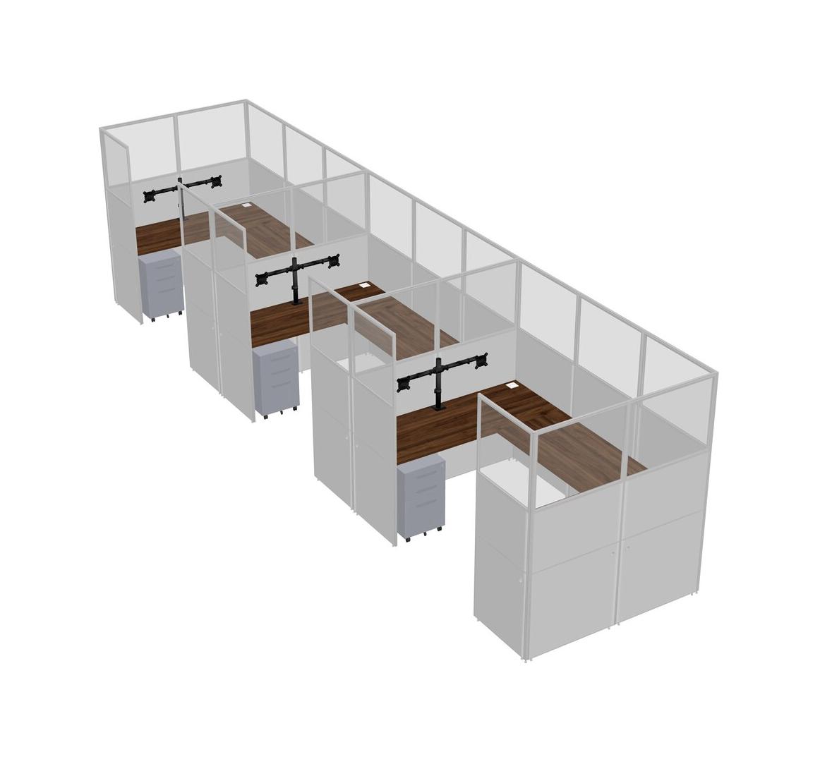 Columbia Walnut U-shaped Panel System For 3 Person + Monitor Arm (double Arms) + Metal Mobile Drawers For 3 User(s)