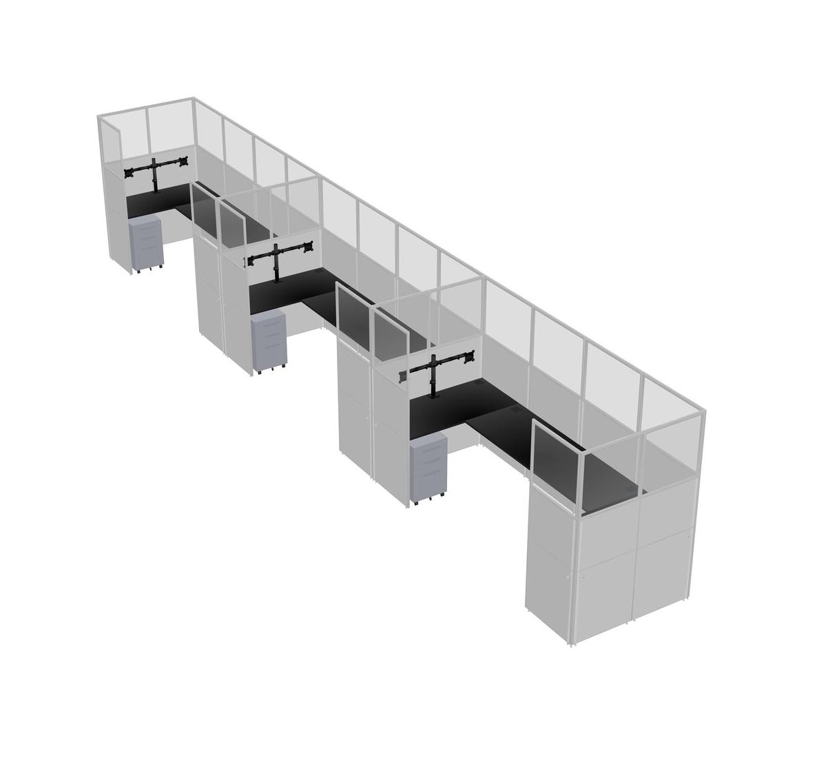 Black U-shaped Panel System For 3 Person + Monitor Arm (double Arms) + Metal Mobile Drawers For 3 User(s)