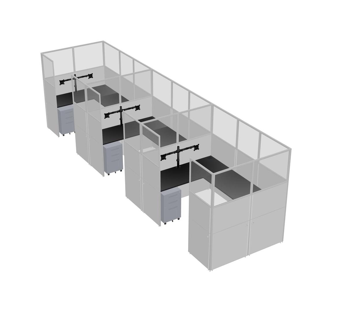 Black U-shaped Panel System For 3 Person + Monitor Arm (double Arms) + Metal Mobile Drawers For 3 User(s)