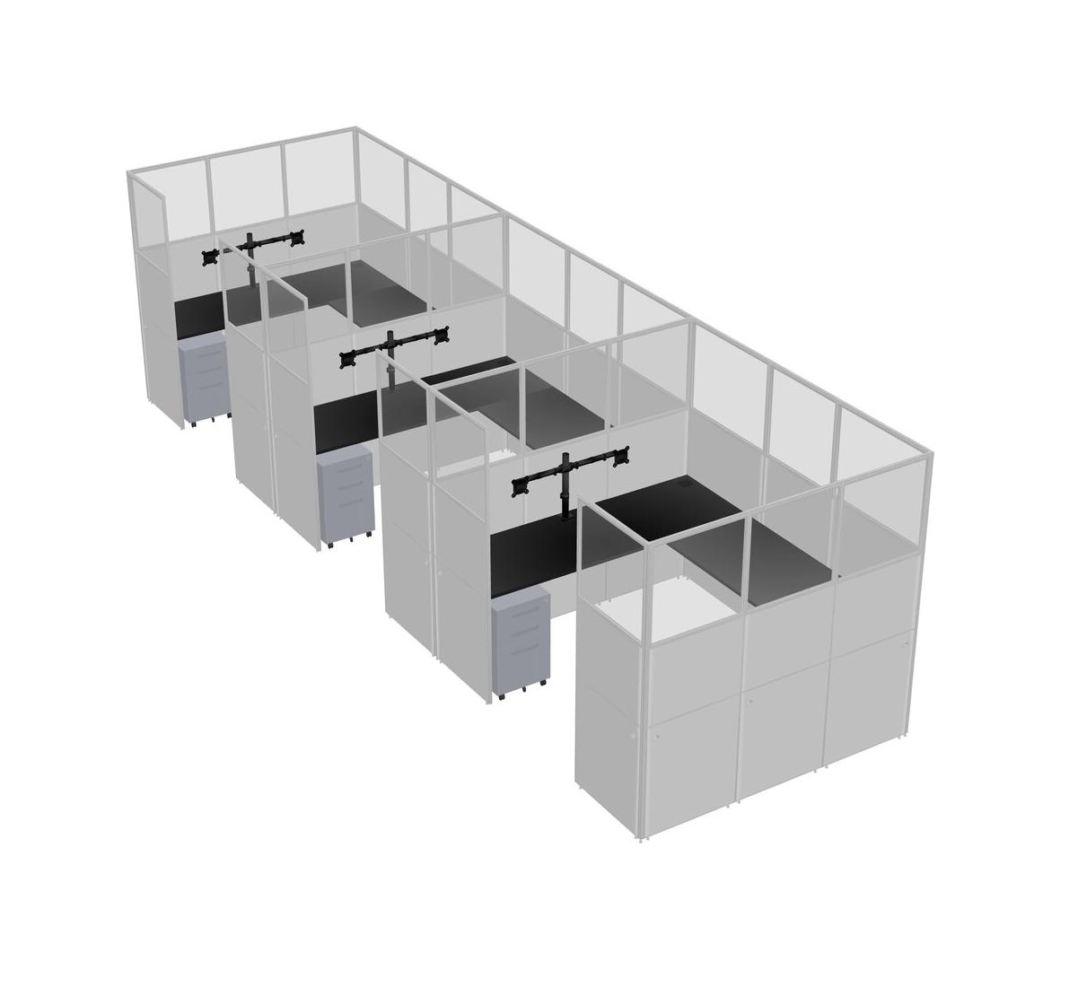 Black U-shaped Panel System For 3 Person + Monitor Arm (double Arms) + Metal Mobile Drawers For 3 User(s)