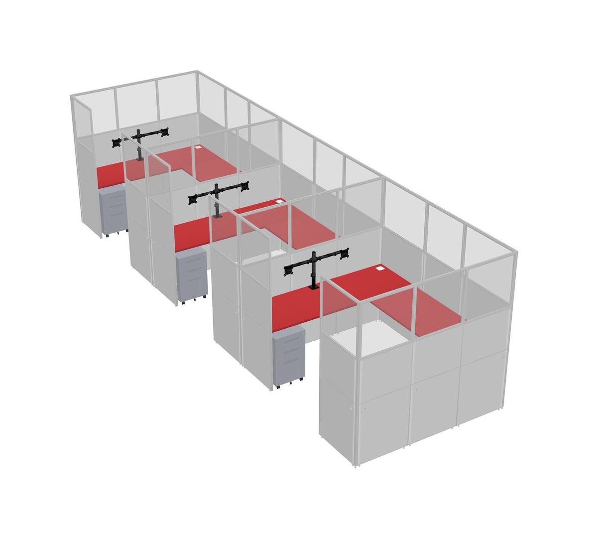 Prism Red U-shaped Panel System For 3 Person + Monitor Arm (double Arms) + Metal Mobile Drawers For 3 User(s)