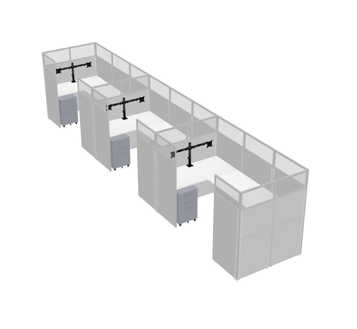 White U-shaped Panel System For 3 Person + Monitor Arm (double Arms) + Metal Mobile Drawers For 3 User(s)