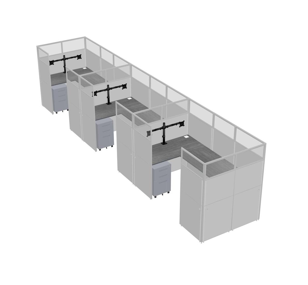 Grey U-shaped Panel System For 3 Person + Monitor Arm (double Arms) + Metal Mobile Drawers For 3 User(s)