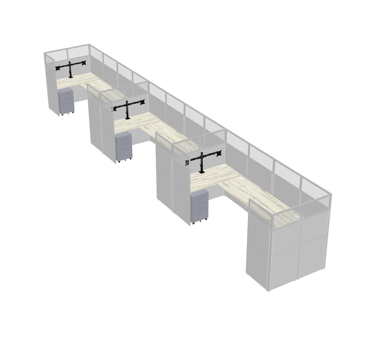 Heinne Holz U-shaped Panel System For 3 Person + Monitor Arm (double Arms) + Metal Mobile Drawers For 3 User(s)
