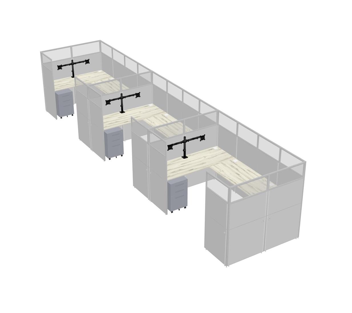 Heinne Holz U-shaped Panel System For 3 Person + Monitor Arm (double Arms) + Metal Mobile Drawers For 3 User(s)