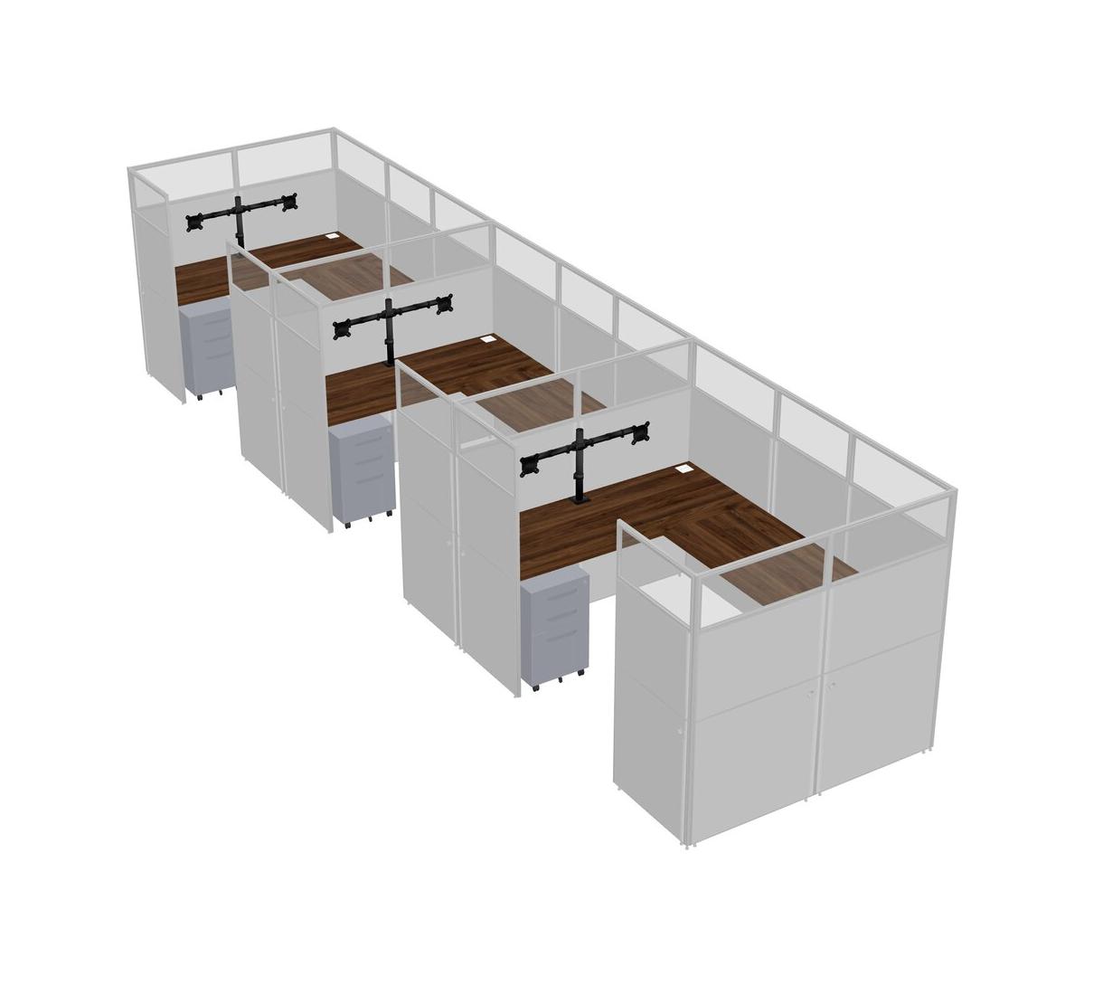 Columbia Walnut U-shaped Panel System For 3 Person + Monitor Arm (double Arms) + Metal Mobile Drawers For 3 User(s)