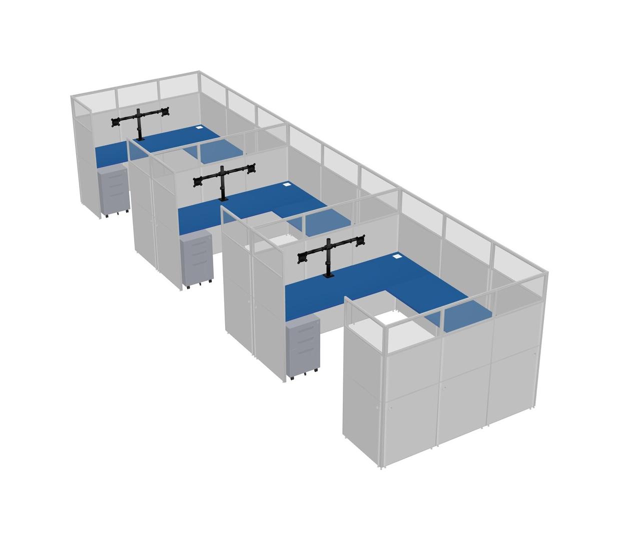 Prism Blue U-shaped Panel System For 3 Person + Monitor Arm (double Arms) + Metal Mobile Drawers For 3 User(s)