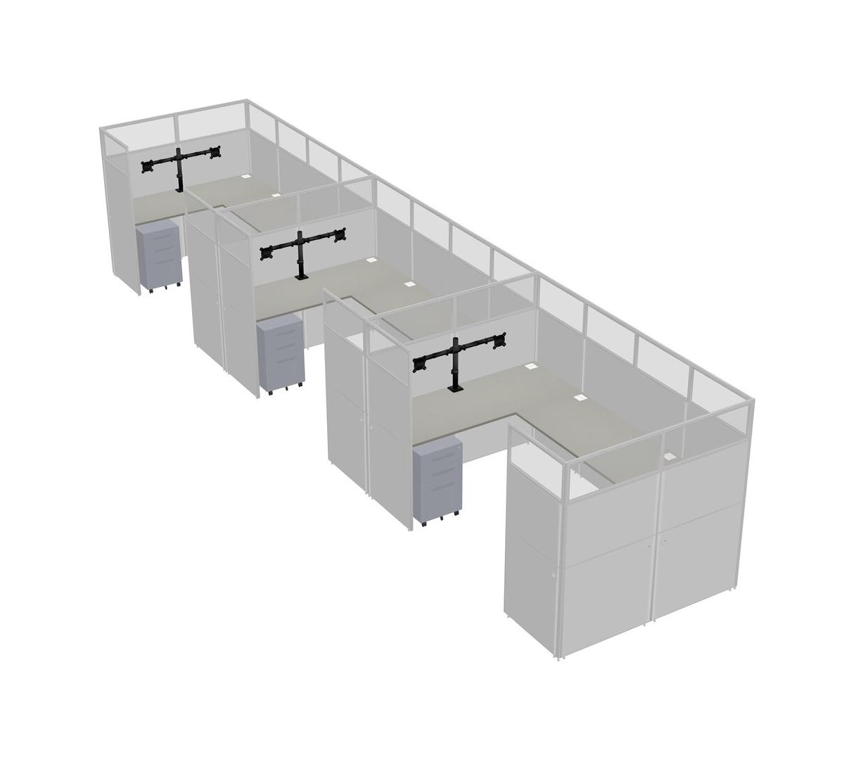 Grey Shadows U-shaped Panel System For 3 Person + Monitor Arm (double Arms) + Metal Mobile Drawers For 3 User(s)