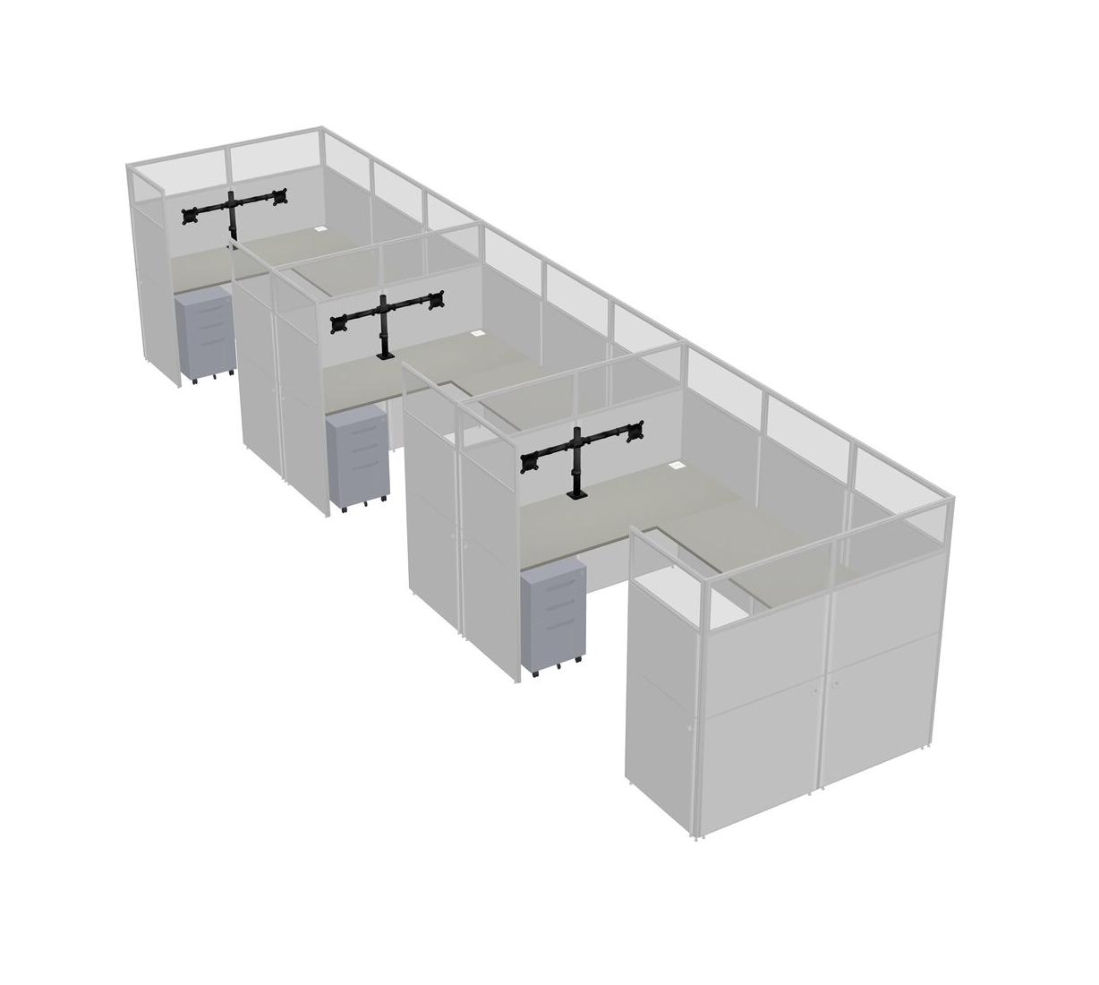 Grey Shadows U-shaped Panel System For 3 Person + Monitor Arm (double Arms) + Metal Mobile Drawers For 3 User(s)