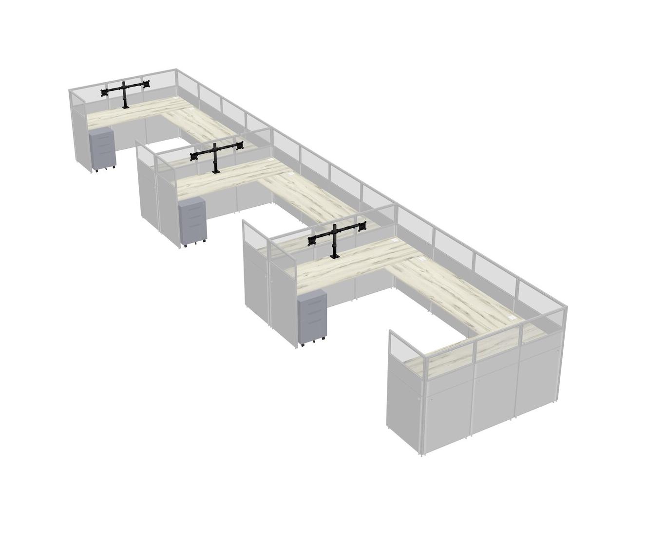Heinne Holz U-shaped Panel System For 3 Person + Monitor Arm (double Arms) + Metal Mobile Drawers For 3 User(s)