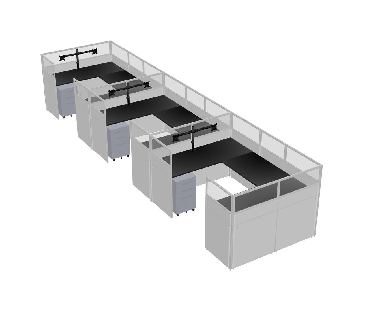 Black U-shaped Panel System For 3 Person + Monitor Arm (double Arms) + Metal Mobile Drawers For 3 User(s)