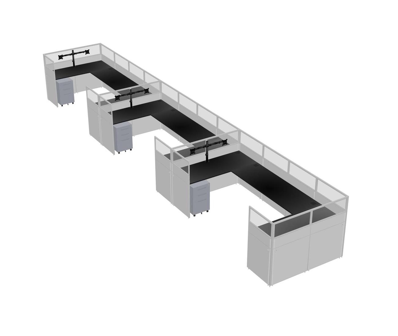 Black U-shaped Panel System For 3 Person + Monitor Arm (double Arms) + Metal Mobile Drawers For 3 User(s)