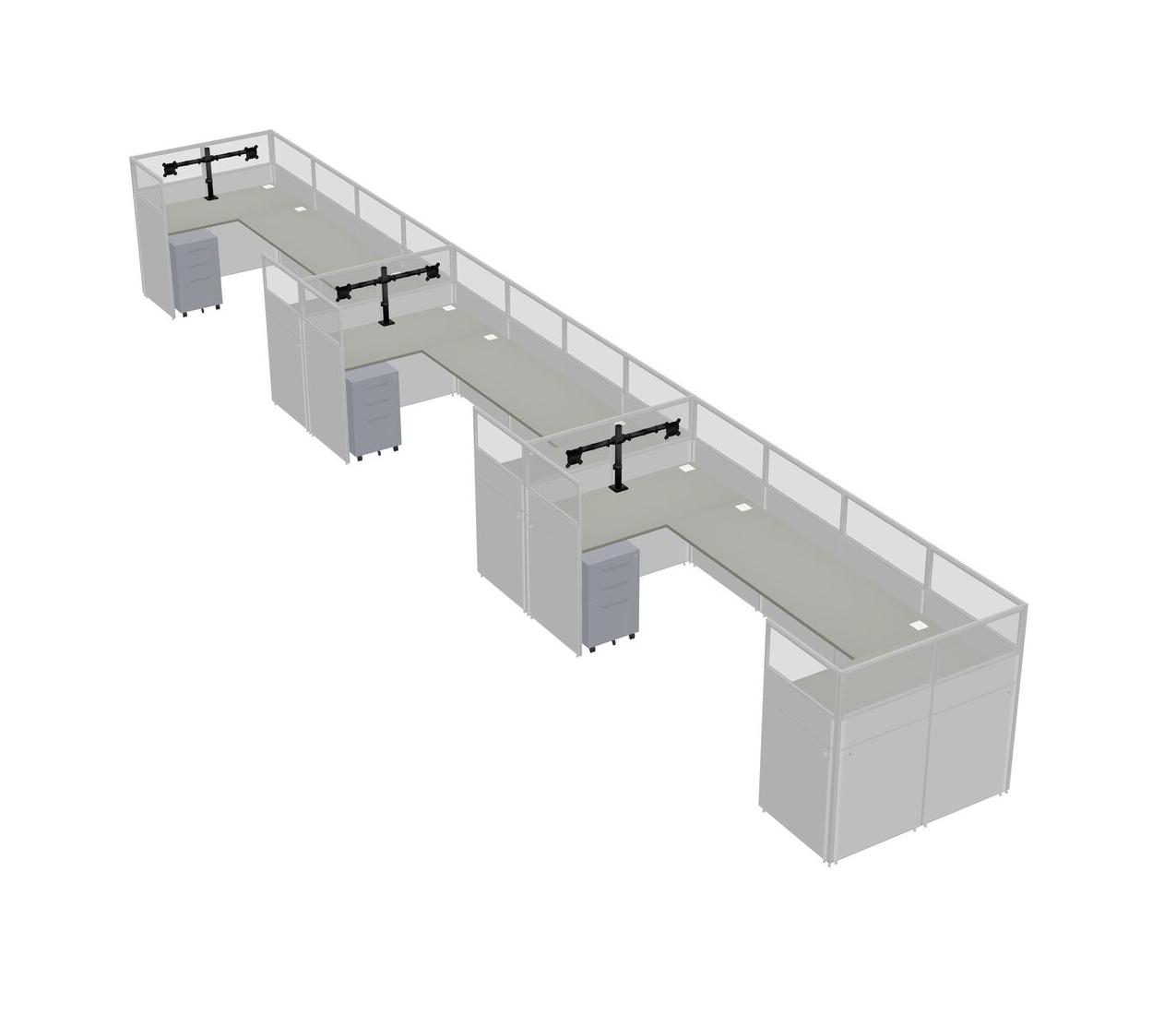Grey Shadows U-shaped Panel System For 3 Person + Monitor Arm (double Arms) + Metal Mobile Drawers For 3 User(s)