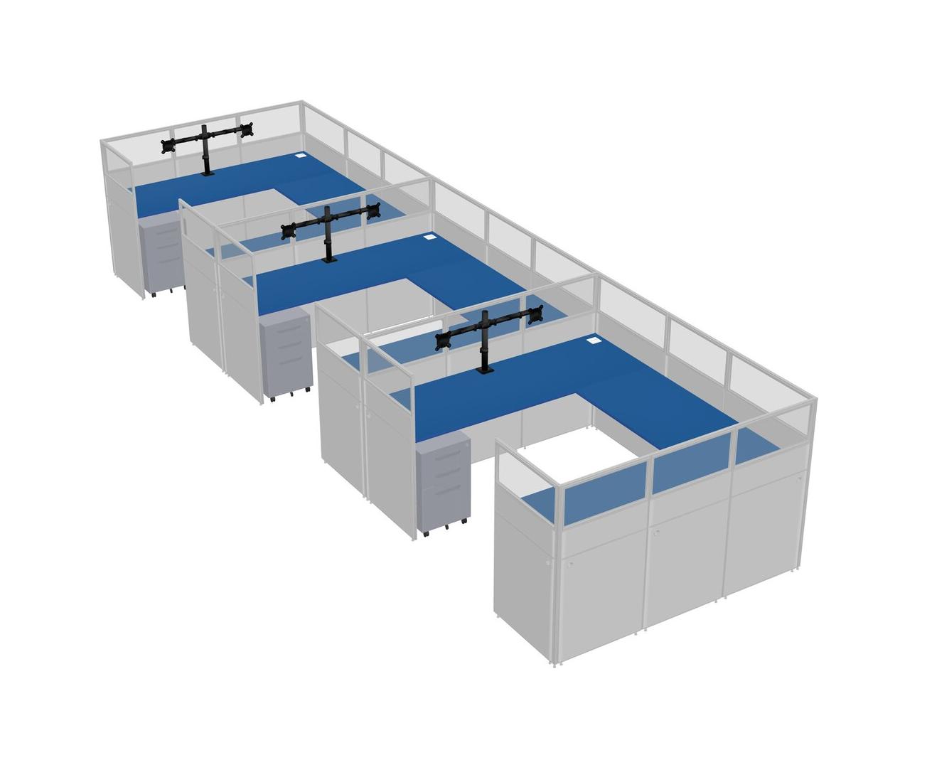 Prism Blue U-shaped Panel System For 3 Person + Monitor Arm (double Arms) + Metal Mobile Drawers For 3 User(s)