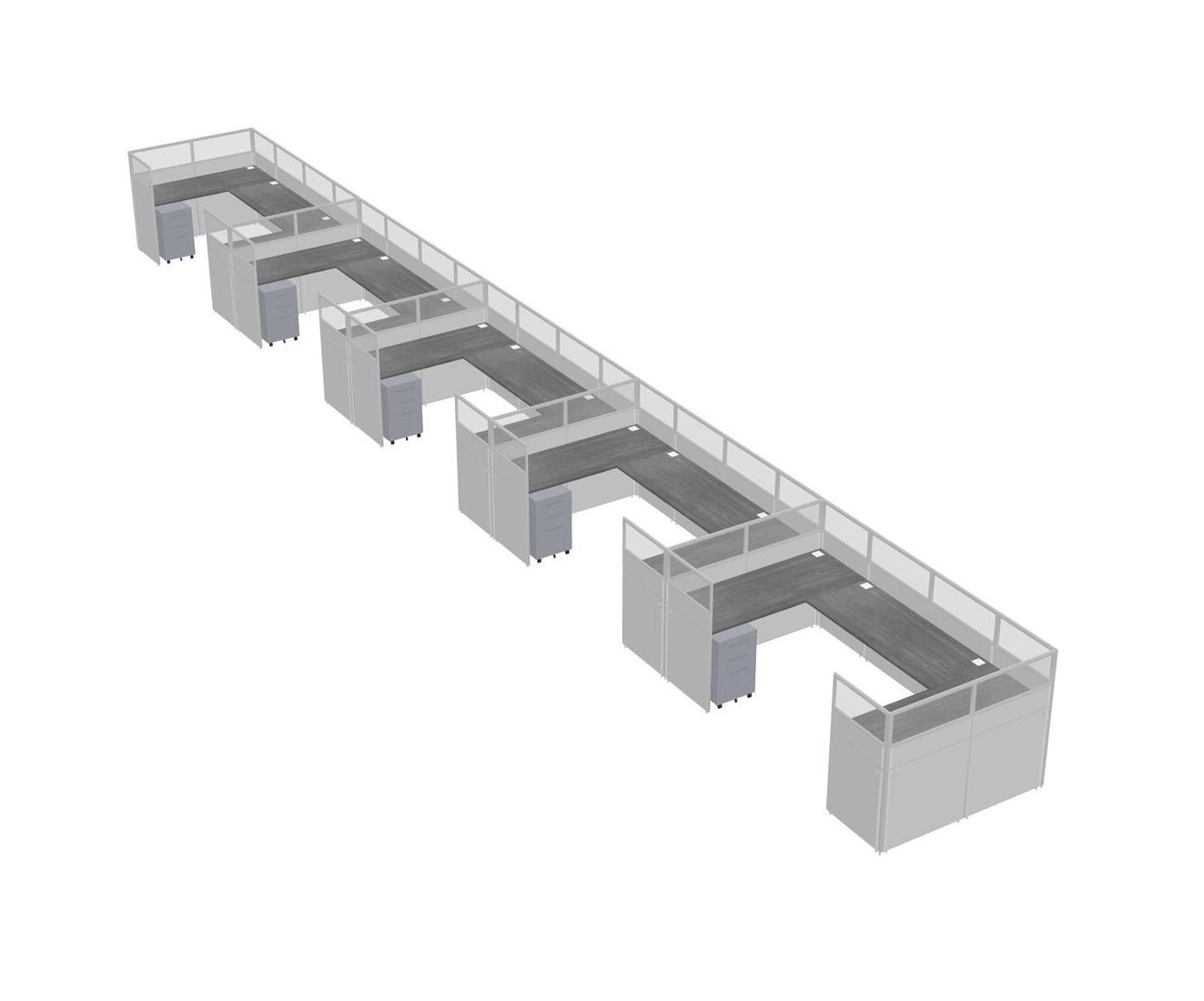 Grey U-shaped Panel System For 5 Person + Metal Mobile Drawers For 5 User(s)