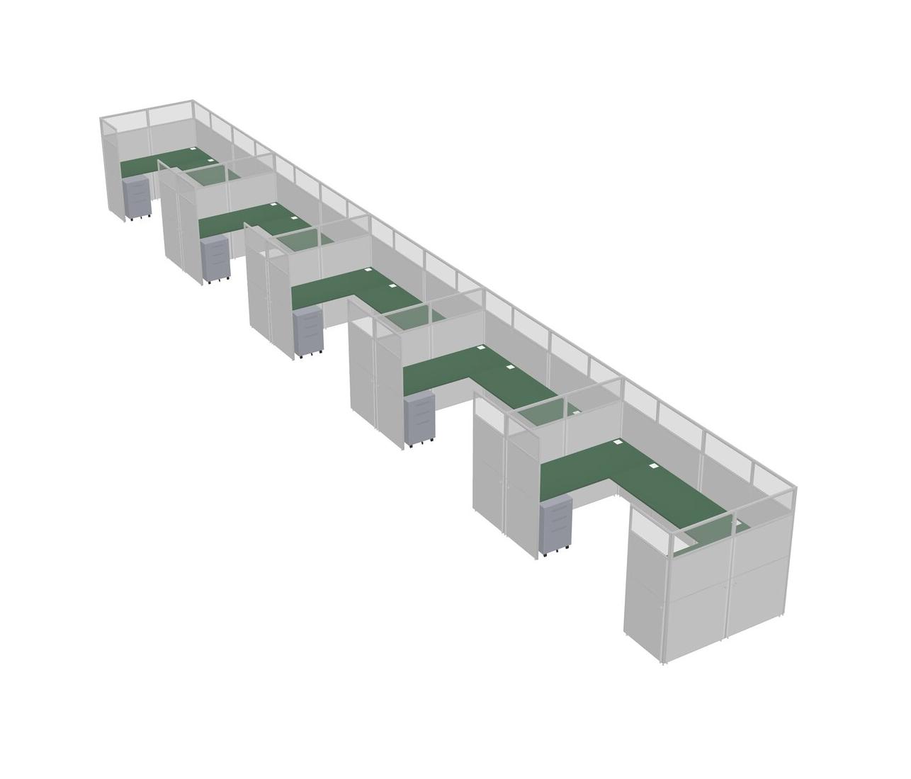 Green U-shaped Panel System For 5 Person + Metal Mobile Drawers For 5 User(s)