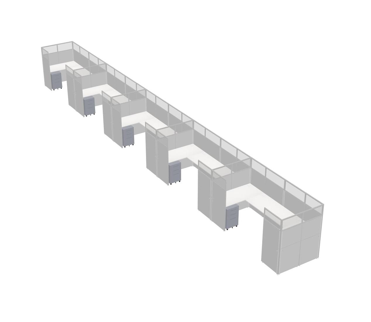 White U-shaped Panel System For 5 Person + Metal Mobile Drawers For 5 User(s)