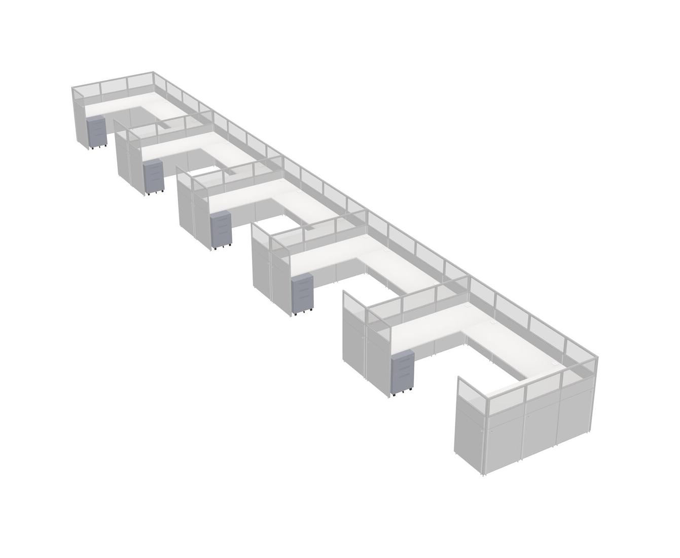 White U-shaped Panel System For 5 Person + Metal Mobile Drawers For 5 User(s)