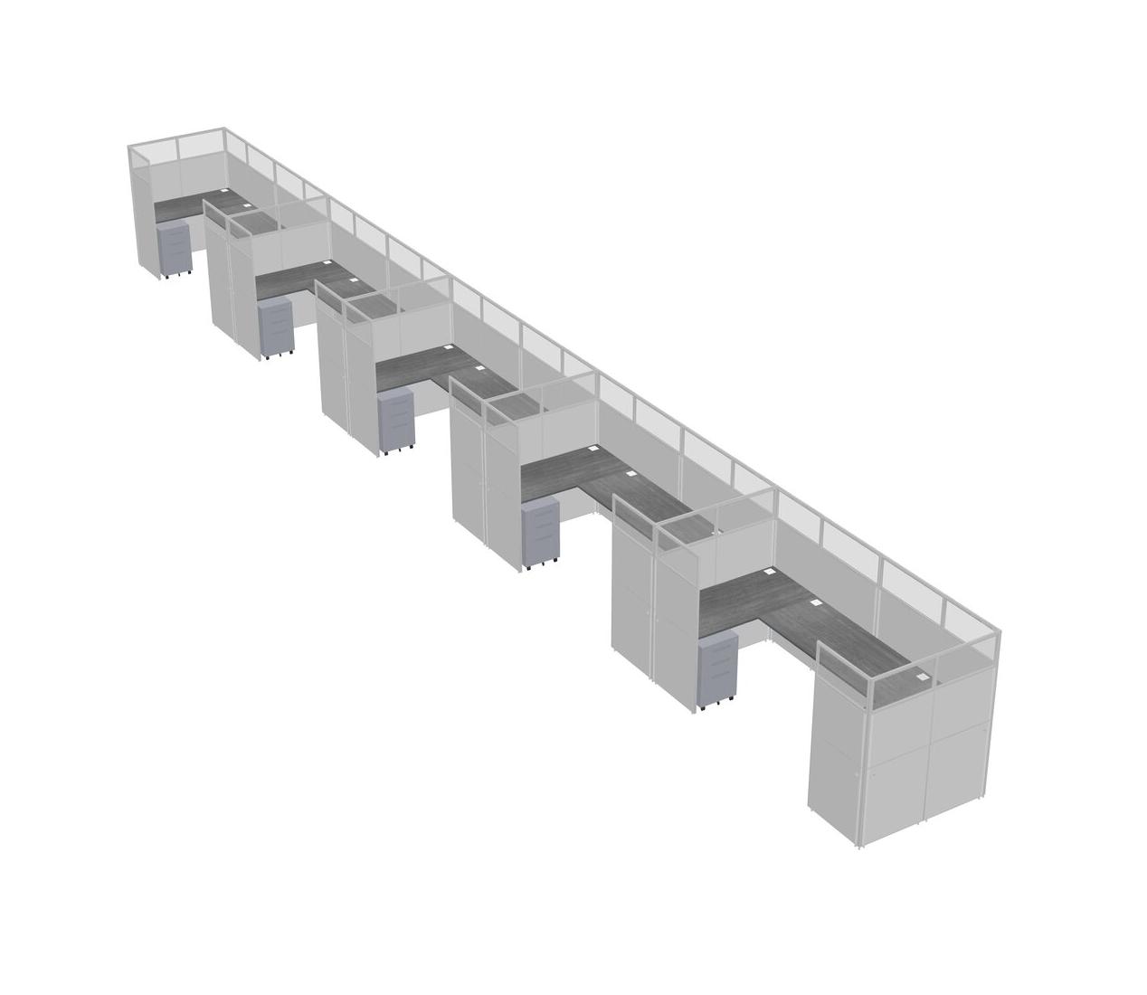 Grey U-shaped Panel System For 5 Person + Metal Mobile Drawers For 5 User(s)