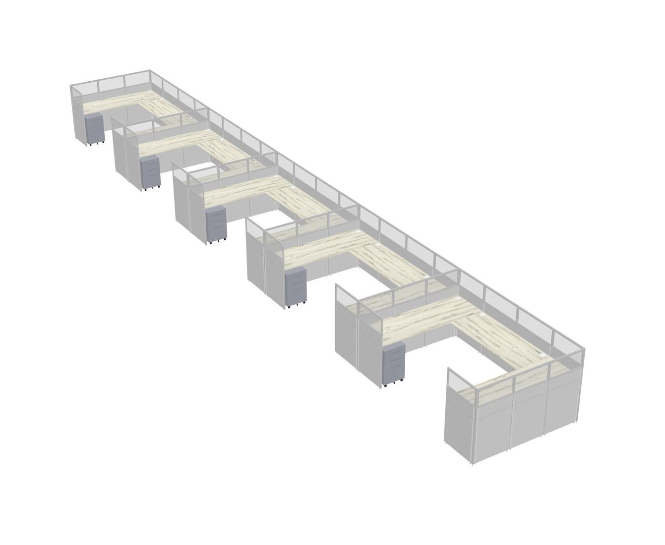 Heinne Holz U-shaped Panel System For 5 Person + Metal Mobile Drawers For 5 User(s)