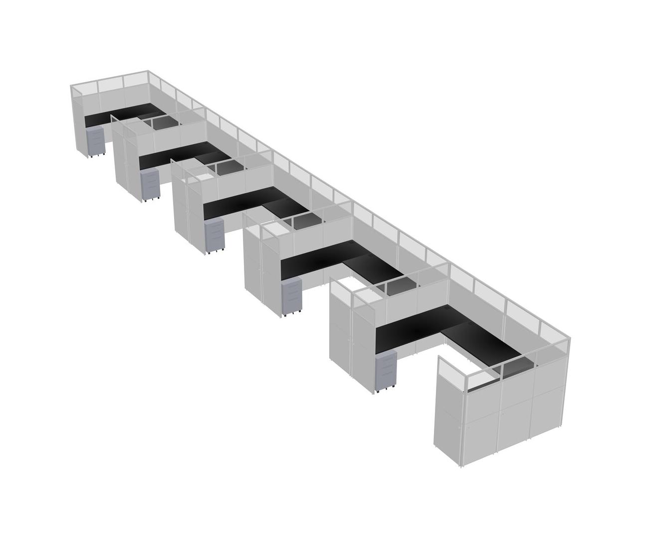Black U-shaped Panel System For 5 Person + Metal Mobile Drawers For 5 User(s)