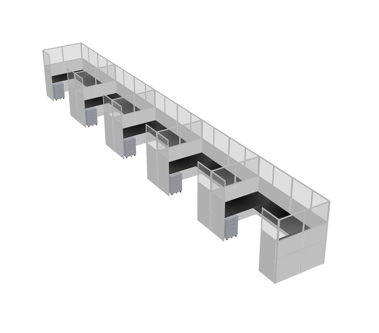 Black U-shaped Panel System For 5 Person + Metal Mobile Drawers For 5 User(s)