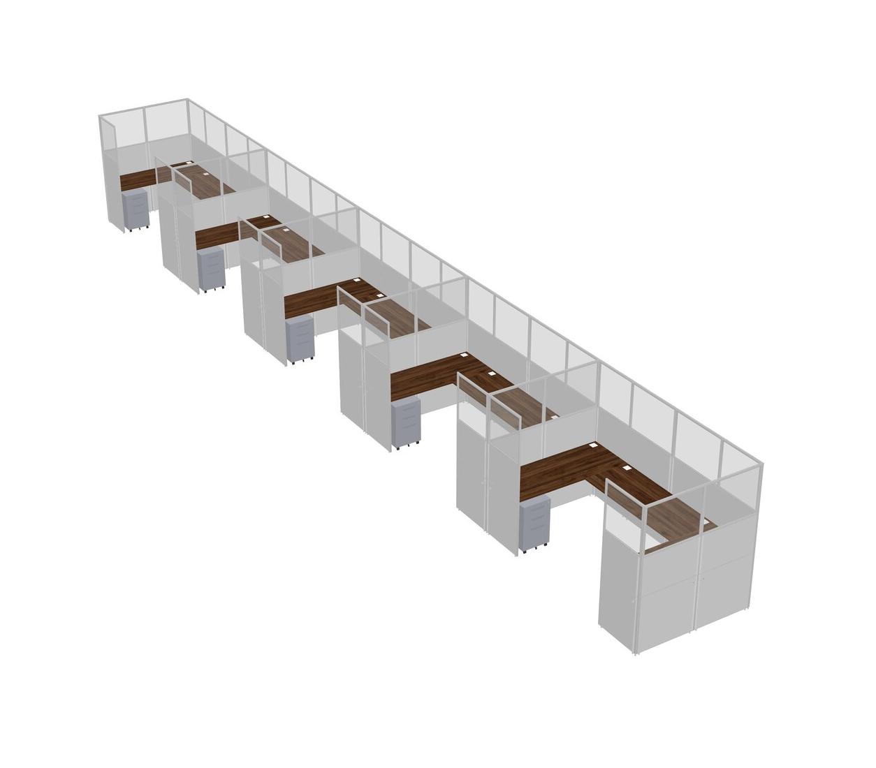 Columbia Walnut U-shaped Panel System For 5 Person + Metal Mobile Drawers For 5 User(s)