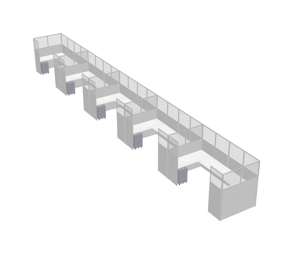 White U-shaped Panel System For 5 Person + Metal Mobile Drawers For 5 User(s)