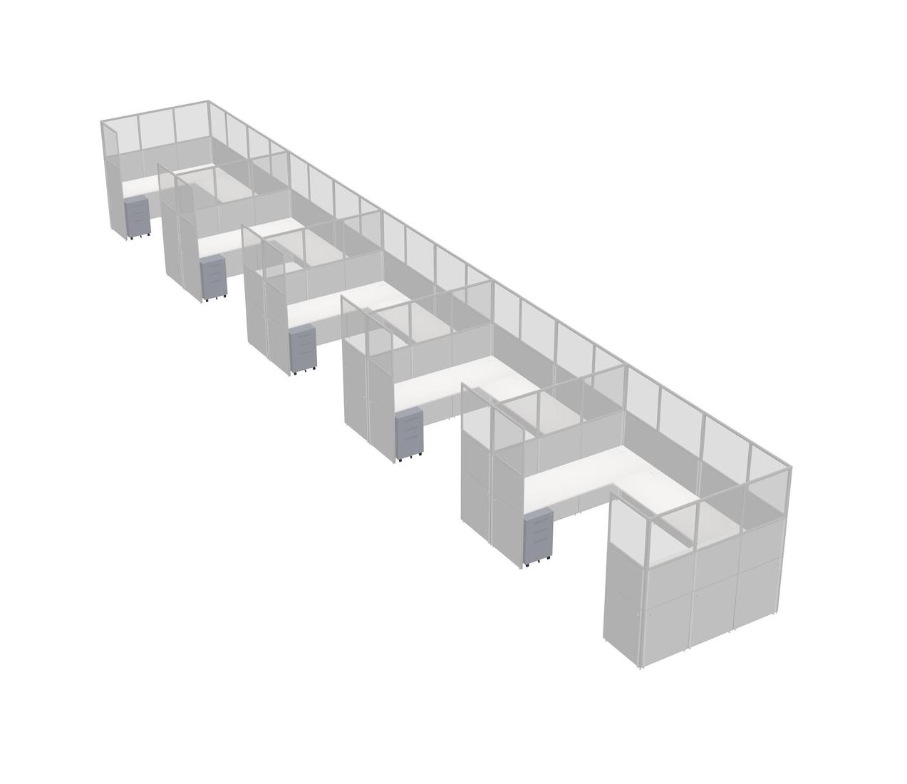 White U-shaped Panel System For 5 Person + Metal Mobile Drawers For 5 User(s)