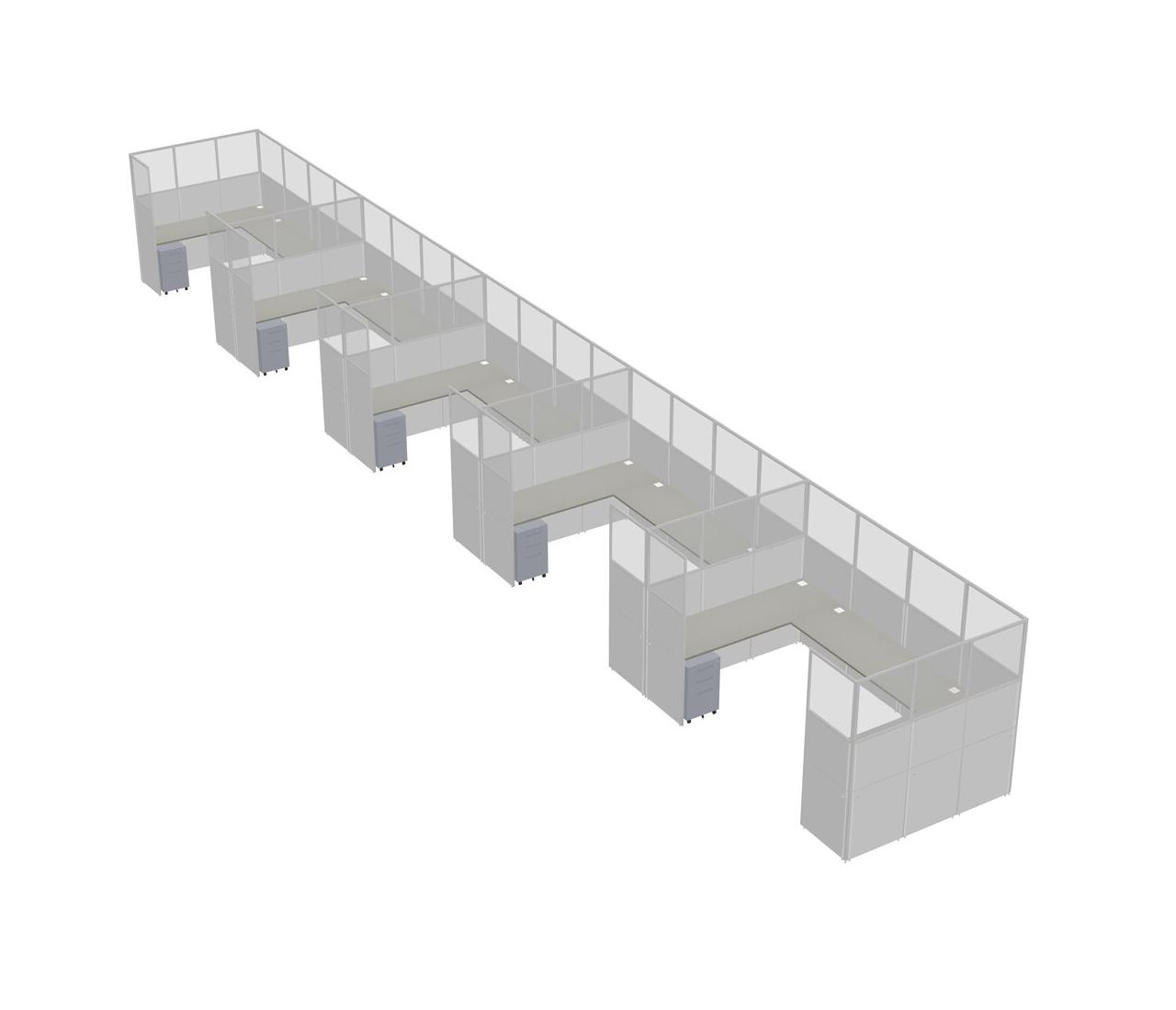 Grey Shadows U-shaped Panel System For 5 Person + Metal Mobile Drawers For 5 User(s)