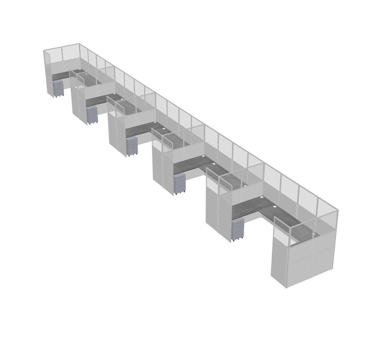 Grey U-shaped Panel System For 5 Person + Metal Mobile Drawers For 5 User(s)