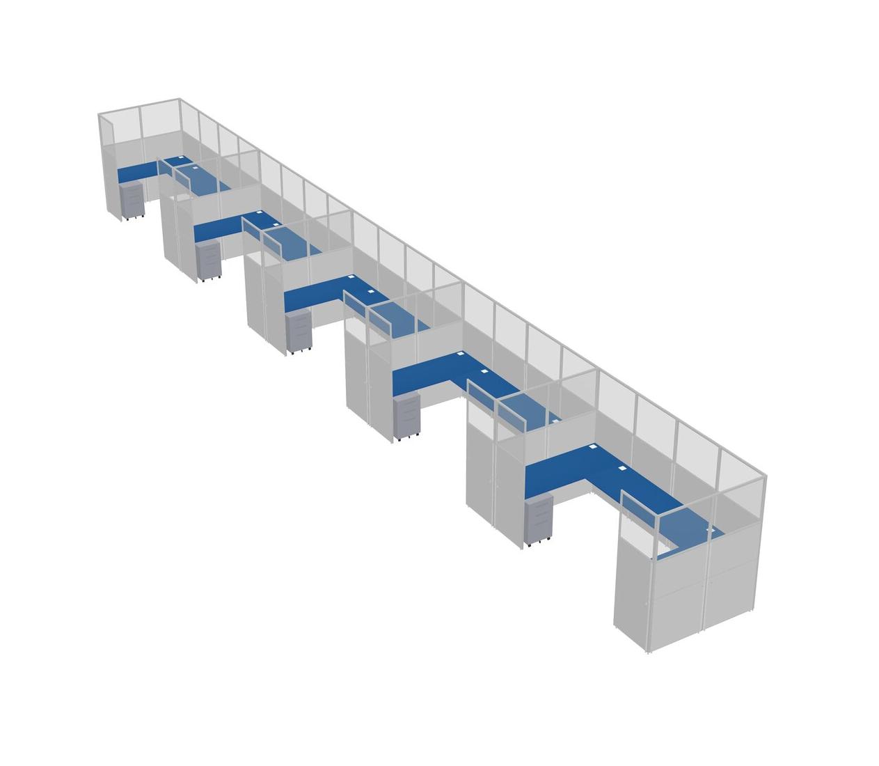Prism Blue U-shaped Panel System For 5 Person + Metal Mobile Drawers For 5 User(s)