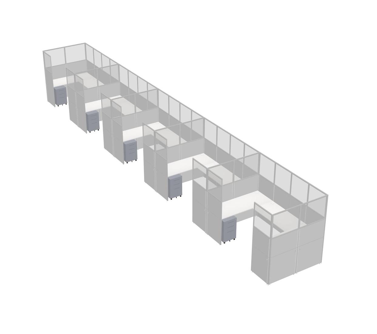 White U-shaped Panel System For 5 Person + Metal Mobile Drawers For 5 User(s)