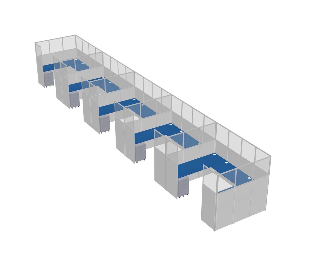 Prism Blue U-shaped Panel System For 5 Person + Metal Mobile Drawers For 5 User(s)