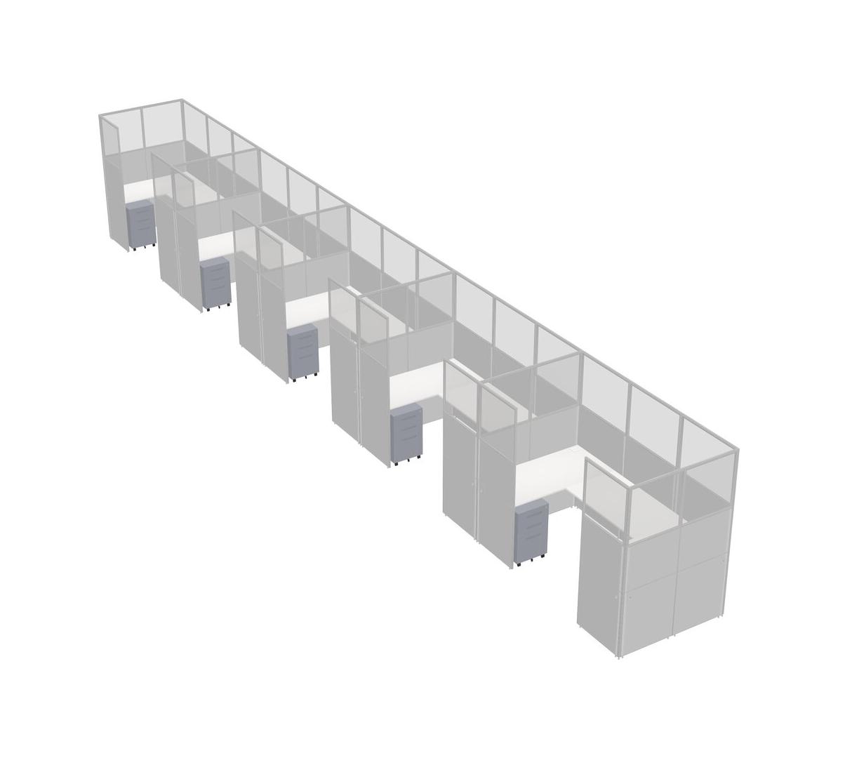 White U-shaped Panel System For 5 Person + Metal Mobile Drawers For 5 User(s)