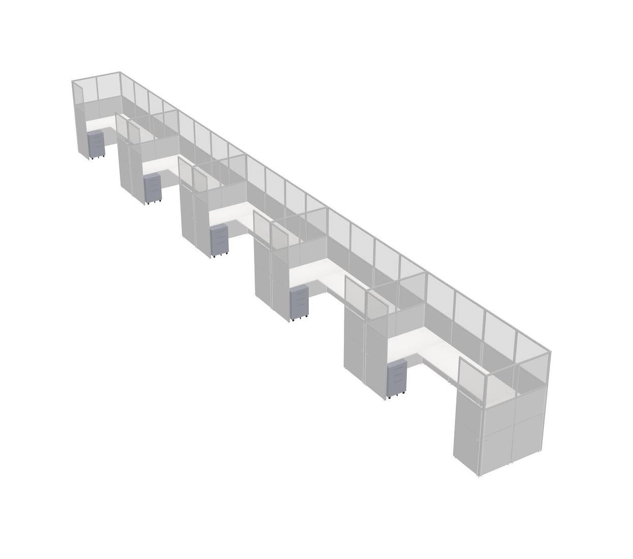 White U-shaped Panel System For 5 Person + Metal Mobile Drawers For 5 User(s)